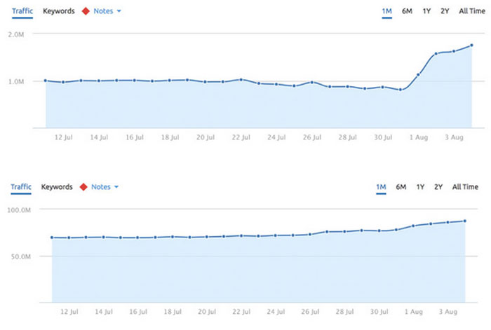 But there were also gains reported, as the following screenshots from SEMRush show: